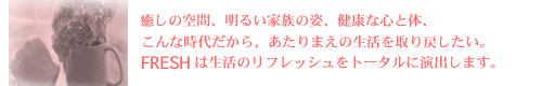 | ●『家族がノビノビと楽しく、笑顔で健康に暮らせる生活』が私たちフレッシュのテーマーであり願いです。 |